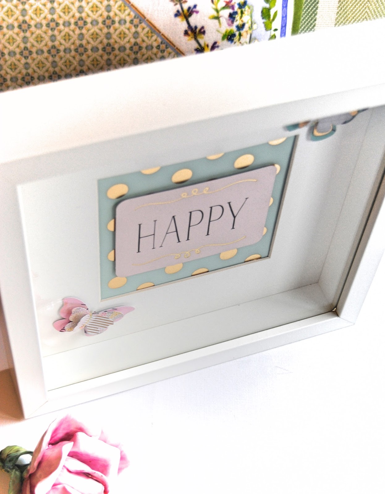 Na sequência da mensagem anterior, hoje apresento mais 3 quadros que criei para ornamentar as paredes do meu quarto/ atelier. É mesmo muito fácil... Com umas molduras económicas, uns papeis bonitos de scrapbooking (ou similar...), umas letras douradas (ou de outra cor a gosto...), uns cartões de Project Life e alguns adornos, como as borboletas que utilizei, e já temos tudo o que precisamos para num instante termos uns quadros para decorar uma parede. E a vantagem é que quando nos cansarmos deles podemos recomeçar todo o processo e criar uns novos de acordo com a estação do ano, com as tendências de cores ou mesmo com o nosso estado de alma.